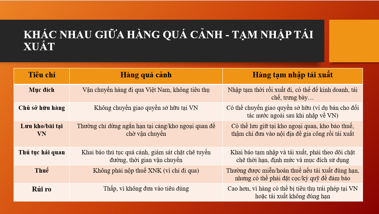3. KHÁC NHAU GIỮA HÀNG QUÁ CẢNG - TẠM NHẬP TÁI XUẤT