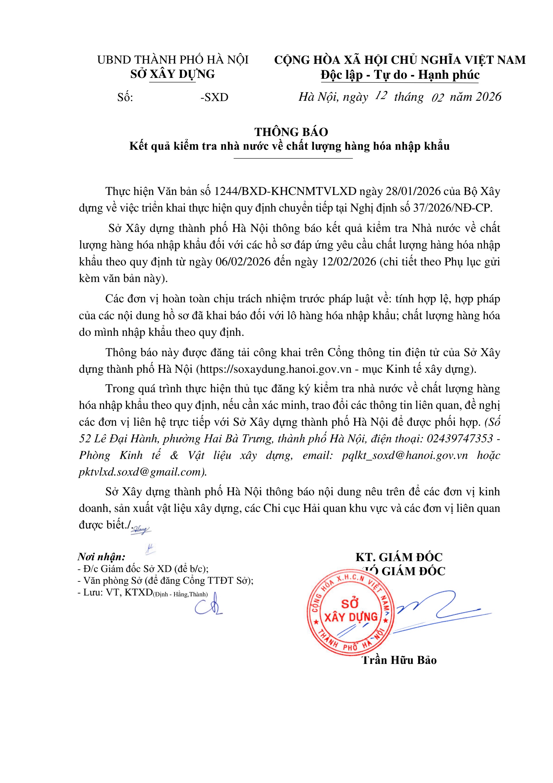 Sau khi có bản Thông báo kết quả do Sở Xây Dựng cấp, doanh nghiệp đem nộp cho cơ quan hải quan để thông quan hàng hóa